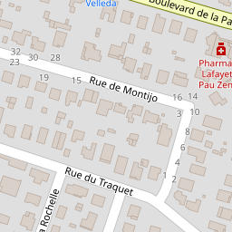 | 14 | 64000 | AVENUE DU DOYEN HENRI VIZIOZ | PAU | 426684.2 | 6252727.1 | -0.36 | 43.32 | ||