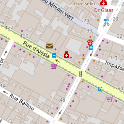 | DUBUS JEAN | 4 RUE GEORGES SACHE | 75014 | Paris | 0980514732 | 2.32376 | 48.83197 |
